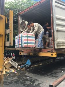 Rút hàng container bằng xe nâng, xe cẩu chuyên dụng.