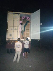 Triển khai công việc: Nhân công tập kết và thực hiện bốc dỡ dưới sự giám sát chặt chẽ của tổ trưởng.